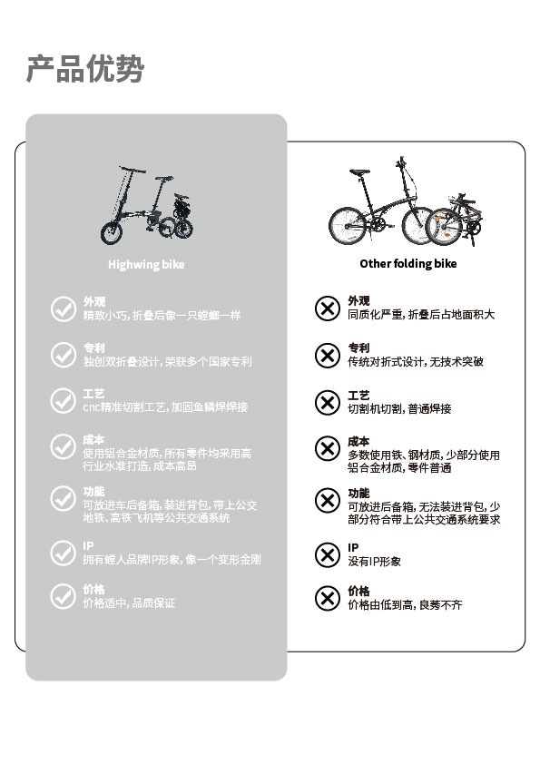市场前景 近年来,受城市地区对环保和便携交通方式需求不断增成长的推动,折叠自行车市场出现了显著增长。根据数据显示,预计从2021年到2035年,全球折叠自行车市场将继续以7%左右的复合年增长率增长。 在中国市场,折叠自行车以其体积小巧、使用方便、价格实惠等特点越来越受欢迎。中国政府还鼓励使用自行车作为交通工具,以减少城市地区的交通拥堵和空气污染,导致折叠自行车的需求激增。 推动折叠自行车市场增长的主要趋势之一是电动折叠自行车的日益普及。电动折叠自行车提供了传统折叠自行车的便利性和便携性,并增加了电动助力的好处,使骑手可以长途骑行并轻松应对各种路况。 另一个趋势是对轻巧耐用的折叠自行车的需求不断增长。制造商正在开发新材料和新技术,以制造既轻便又坚固的折叠自行车,使其更易于携带且耐用,更适合日常使用。 就市场份额而言,由于人口稠密的城市对环保和负担得起的交通选择的需求很高,预计亚太地区、欧美地区将主导折叠自行车市场。在中国,中产阶级迅速壮大,城市化进程也在不断推动需求。 总之,折叠自行车市场预计将在全球范围内持续增长,电动和轻量化车型将推动需求。在政府支持和不断壮大的中产阶级的推动下,中国市场预计也将继续扩大。
