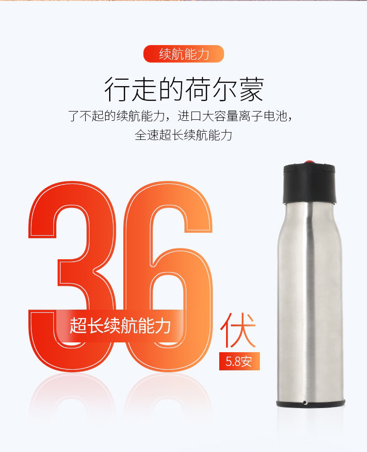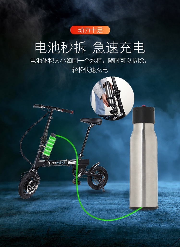 电动车只需2小时就可以充满电,采用原装18650锂电池,电池可以随时取出,并可以当充电宝使用