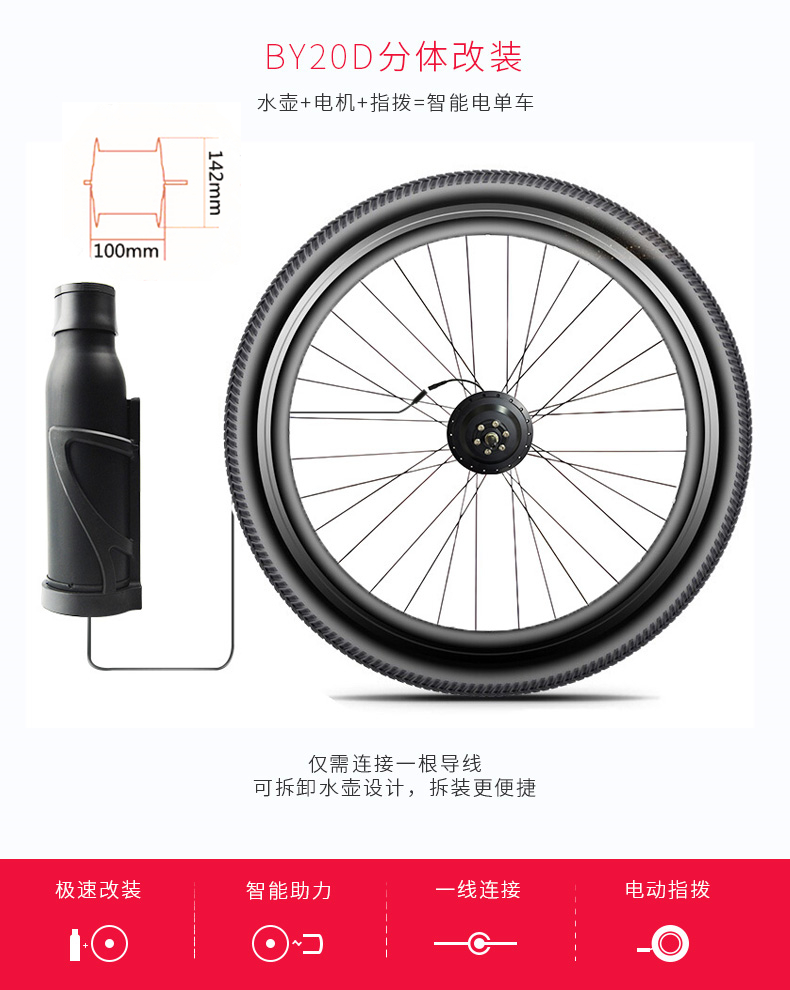 人生是一次一次自我挑战,不断创新的过程,在设计好螳人自行车同时,我们做了大胆的想象,可以随时变成电动车,自行车已经为升级电动车预留了安装口,购买电动装置,只需几步,快速变成电动车!