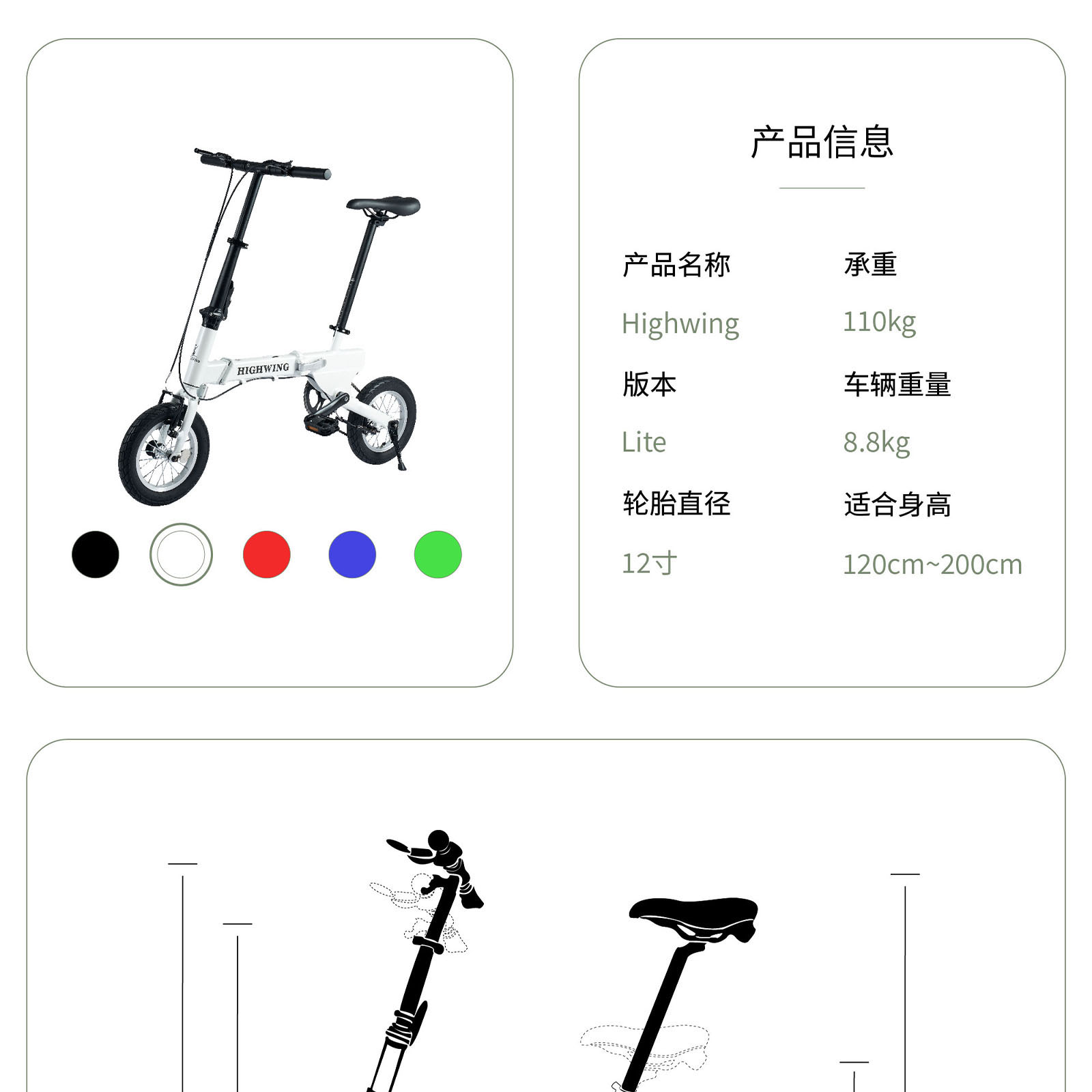 升级版Lite系列男女超轻便携折叠自行车小型免安装12寸可放后备箱